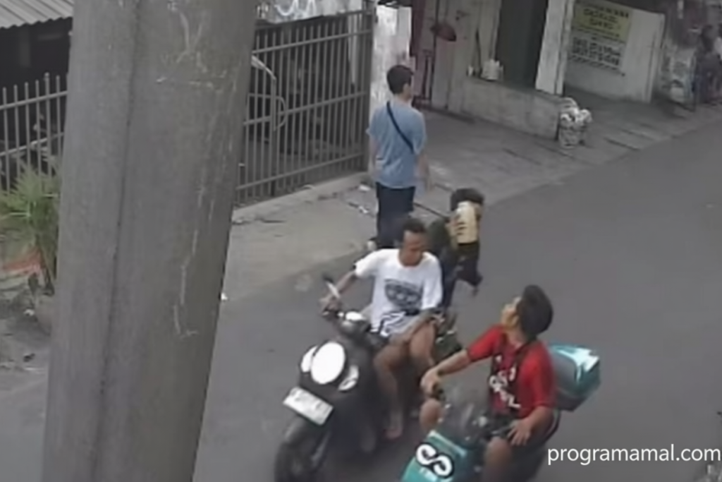 Dalam video yang viral, terlihat korban mengendarai sepeda motor listrik berwarna biru. Ia berpakaian kaos merah belang dan celana pendek hitam. Dua pelaku, yang menggunakan motor matic scoopy, mengikuti korban hingga berhenti sejajar. Setelah terjadi perdebatan verbal, salah satu pelaku menyiram korban dengan cairan dalam botol.